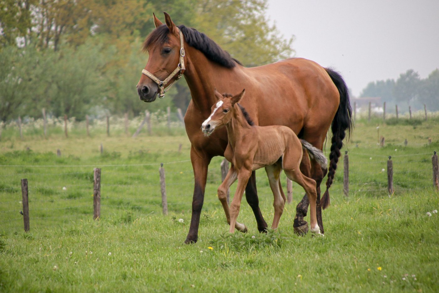 Onze opfok, zowel de sportshetlanders als de PRE’s, New Forest pony’s en Camarque paarden gaan van het voorjaar tot het najaar dag en nacht naar buiten op de weide in gescheiden merrie- en hengstgroepen. Niet-drachtige pony’s die bereden worden verblijven voornamelijk in de paddocks vanwege kans op hoefbevangenheid. Bovendien hebben wij hier zware kleigrond, die voor hen een risico is als ze teveel gras eten. Merries met veulens gaan overdag naar buiten, de wei op, en in de avond naar binnen, wat maakt dat ze veel in de hand zijn. Dit is goed voor het socialisatieproces. Ook zorgt dit ervoor dat er toezicht op de jonge dieren is.